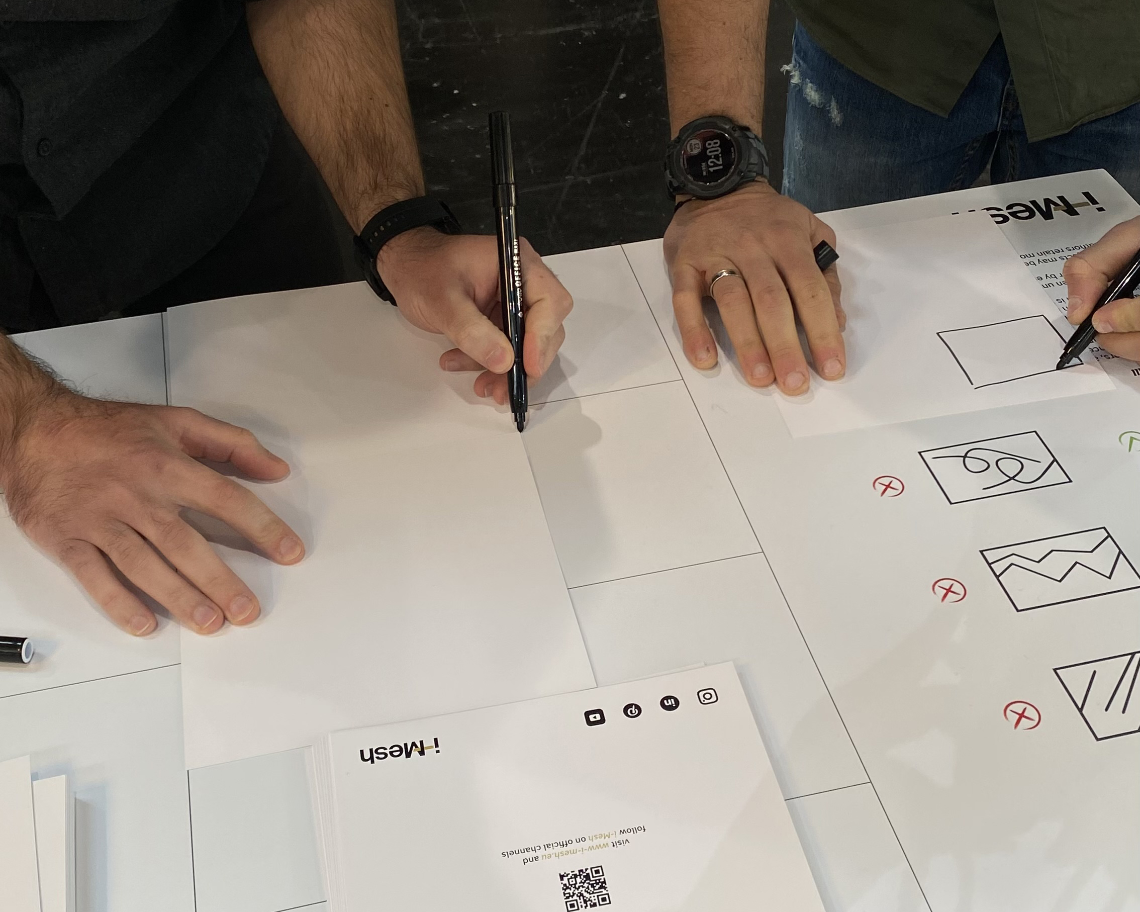Putting a marker in the hand of someone used to digital design brings something magical: the hands think, the line becomes personal, and conversations naturally emerge.