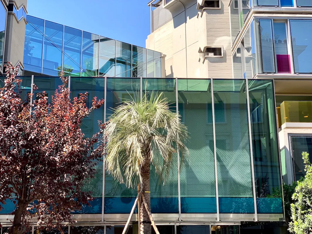 In questo progetto, i-Mesh è stato utilizzato per creare un sistema di doppie tende, selezionato non solo per la sua funzione decorativa, ma soprattutto per le sue caratteristiche di bilanciamento energetico e comfort termico.