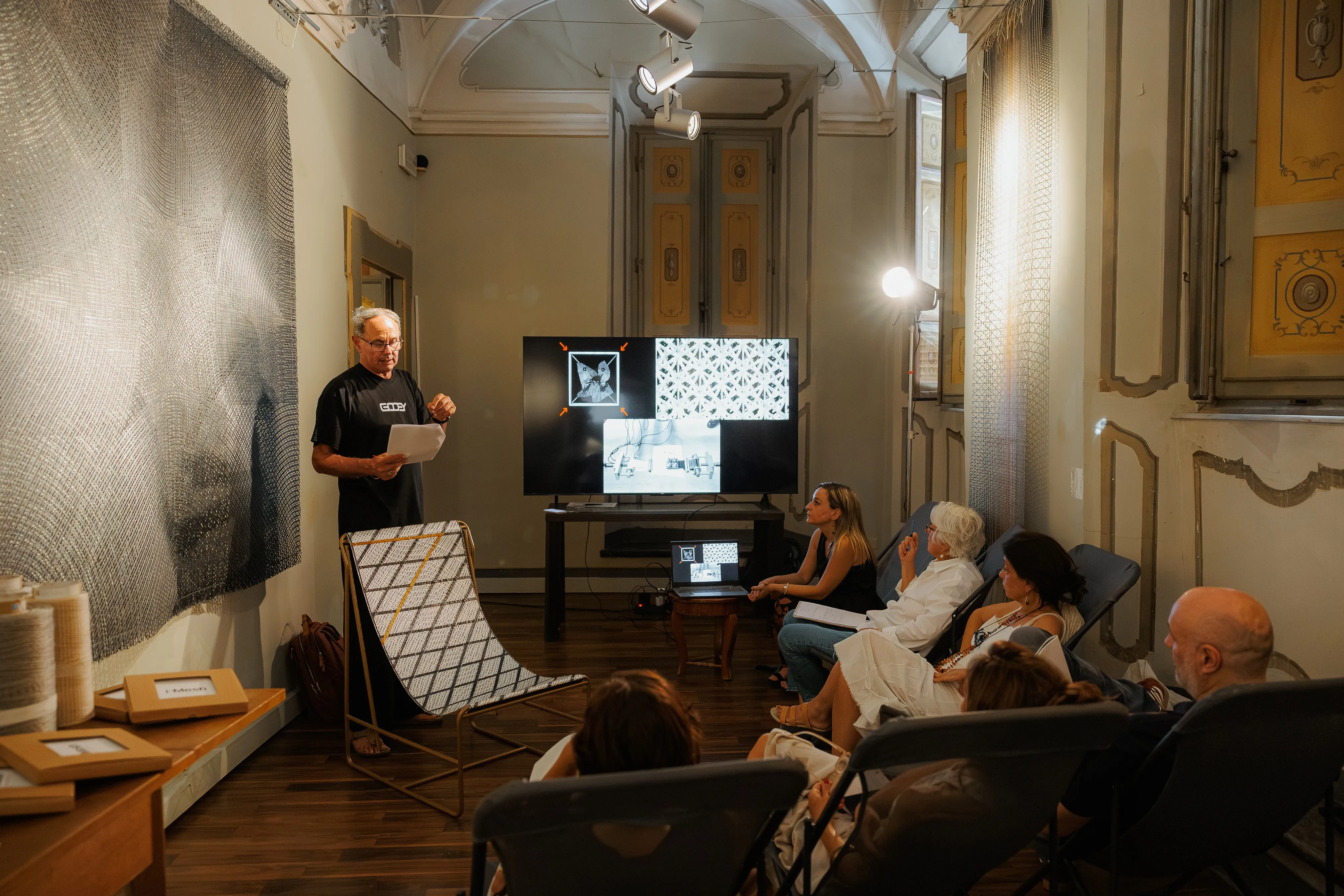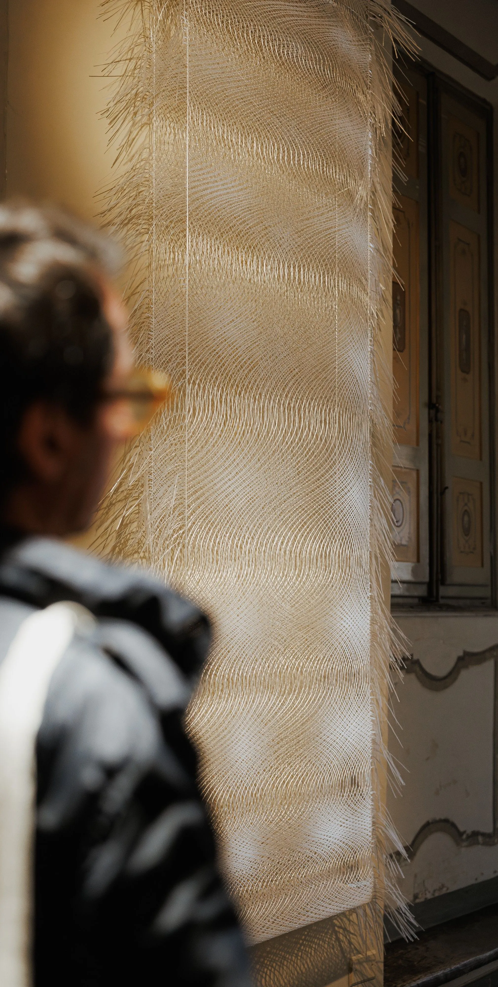 Ogni arazzo diventa paradigma di una realtà aumentata che connette luoghi e significati attraverso la relazione dinamica tra materia e contesto.