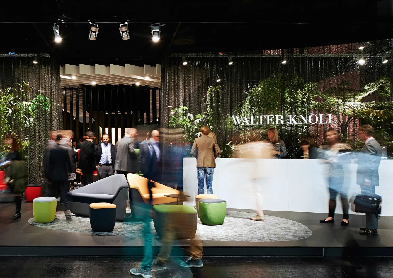 「特別にデザインされ、ロボットでレンダリングされたI-Meshカーテンを使用して、空間の一時的な効果を強調しています。白で展示するのは今回が初めてです。クライアントであるウォルター・ノールの家具にさまざまな抽象的な空間的背景を作り出すのにぴったりでした。」