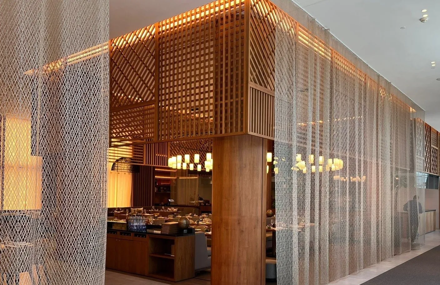 」特別にデザインされ、ロボットでレンダリングされたI-Meshカーテンを採用して、空間の一時的な効果を強調しています。今回初めて白で展示します。クライアントであるウォルター・ノールの家具にさまざまな抽象的な空間的背景を作り出すのにぴったりでした。」
