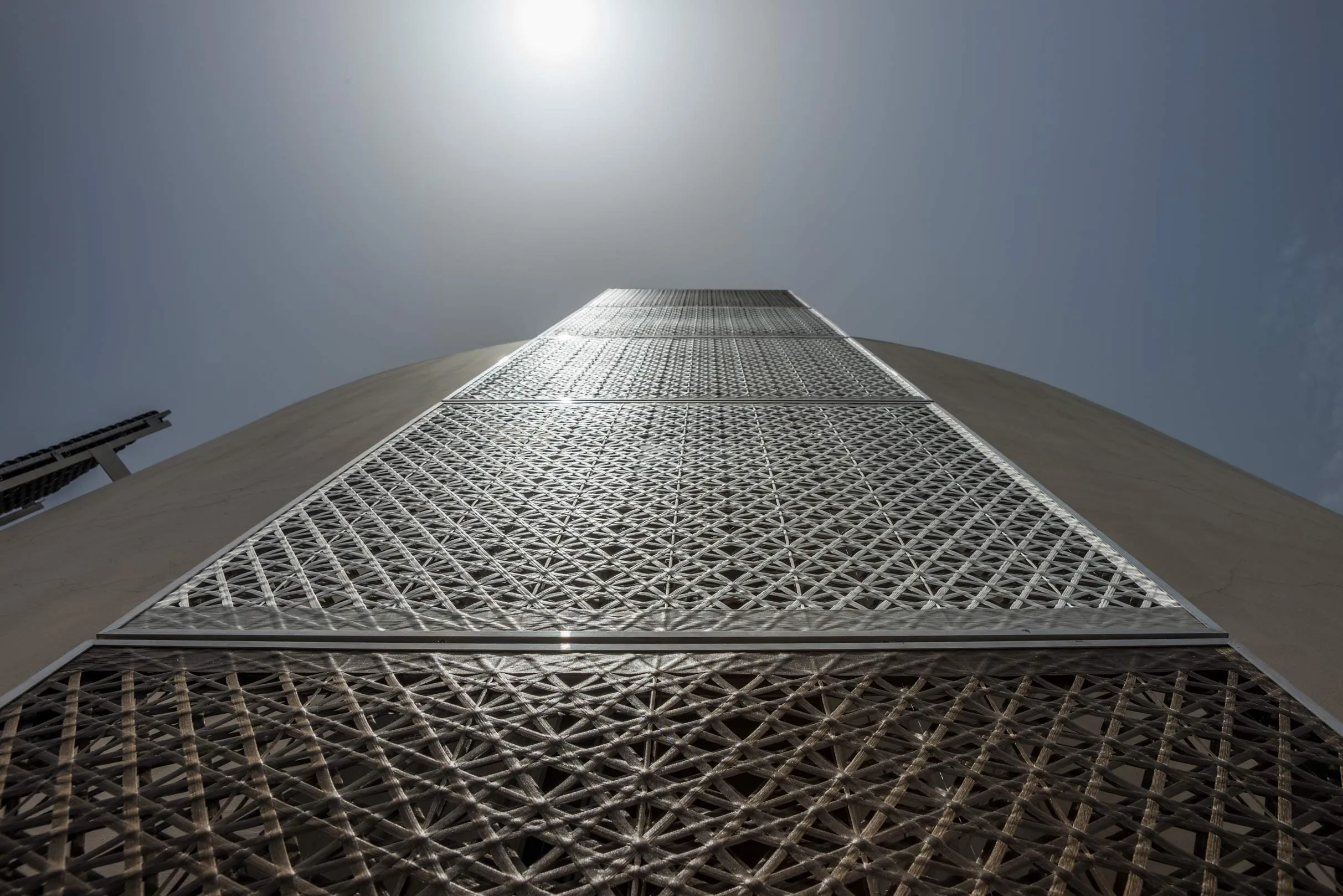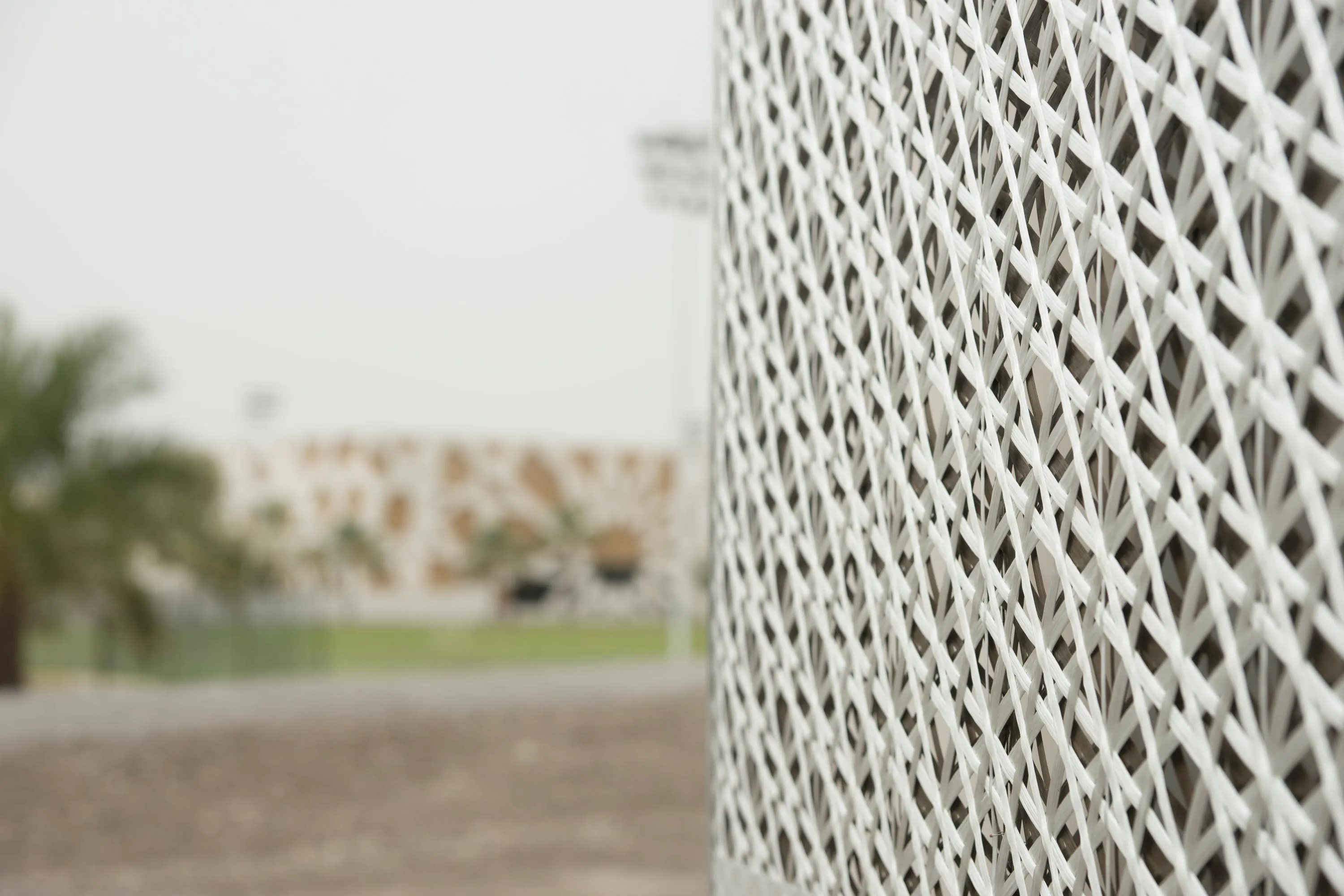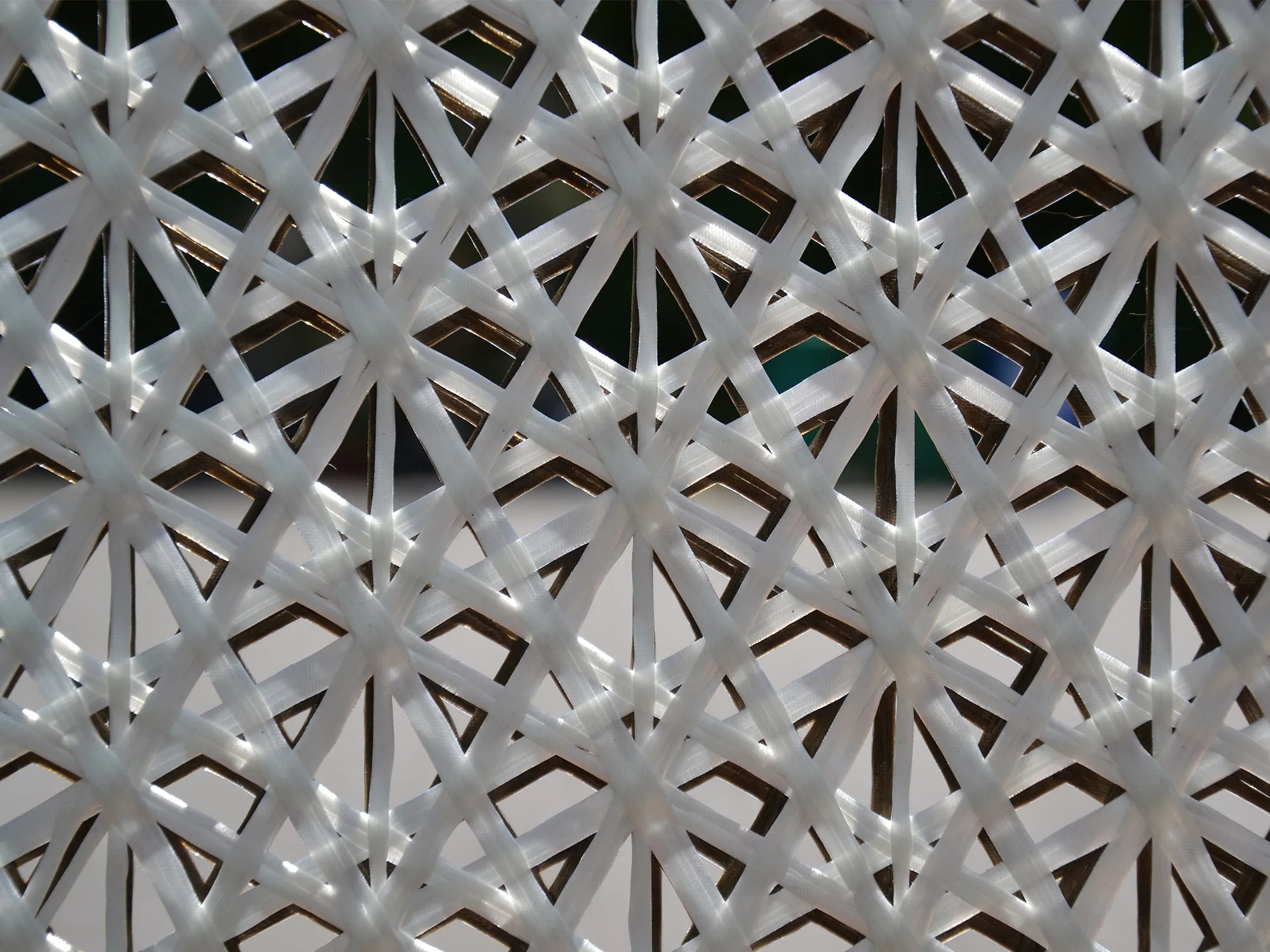ADAPTEX i-Mesh is fabricated from durable, high-performance textiles that have been tested and proven suitable for facade applications. The exterior-facing layer is made from glass fiber to reflect incoming sunlight and regulate the energetic impact. The interior-facing layer is made from darker basalt fiber, which enhances visibility from the inside due to higher contrast. The pattern of the multiaxial grid that defines the openness factor can be parametrically adapted to the specific requirements of different buildings, locations, and design intents. The parametric tool enables adjustment to specific application requirements such as illuminance level, glare protection, shading effect, facade size, and module position.